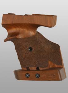 Eine unserer Spezialitäten sind anatomisch geformten Matchgriffe mit verstellbarer Handkantenauflage für Pistolen, die den Bestimmungen der Internationalen Schützenunion ISSF (Olympische Disziplinen) und denen des DSB entsprechen. Da sich die Handform, -größe und -lage von Schütze zu Schütze unterscheiden, bieten diese Griffe hervorragende Anpassungs- und Abstimmungsmöglichkeiten. Für die gängigen Sportpistolen sind Griffe für Rechts- und Linkshänder mit Fingerrillen in 1-3 Größen und teilweise sogar in XL aus Nussbaum lieferbar.